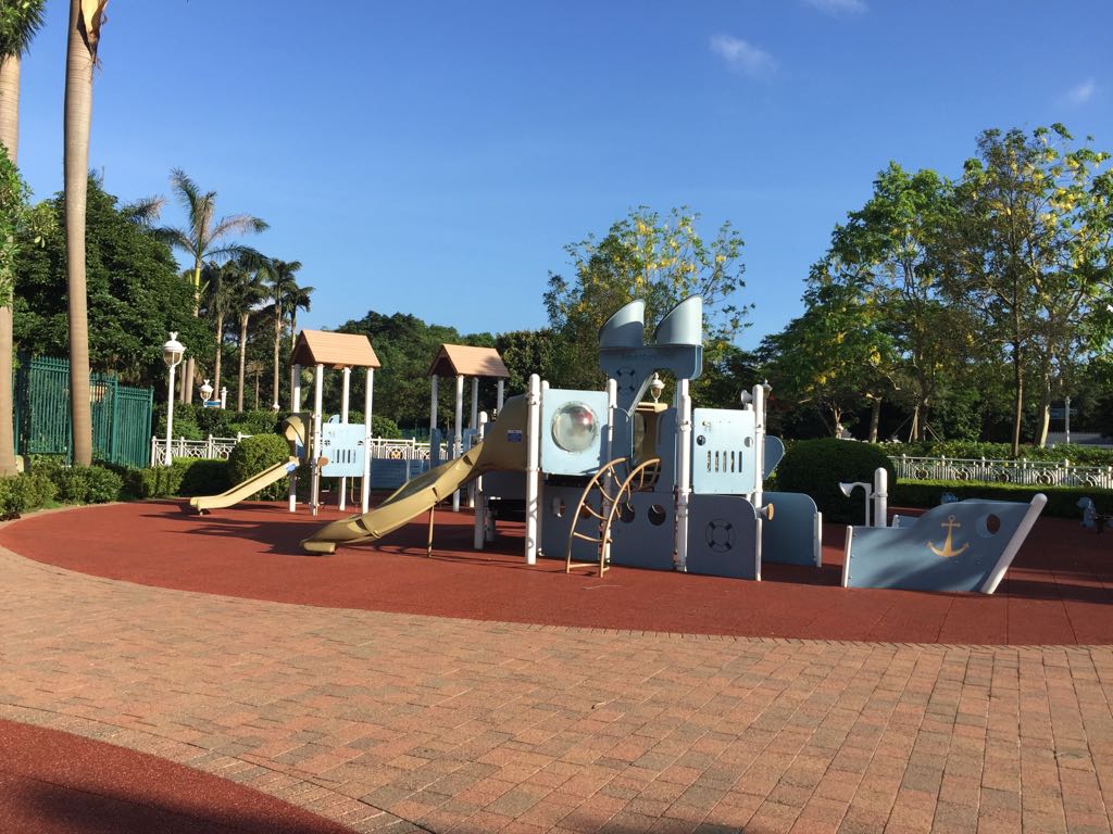 迪欣湖這裡的建築,電燈柱、涼亭等都帶有濃厚童話色彩,有一片又一片的草地,樹蔭多,基本配套設施,如兒童遊樂場、便利店、停車場、洗手間等都一應俱全。這裡還有一個超大的人工湖(據說有12公頃大小,它也是香港最大的人工湖呢!),這裡還有一條1.5公里的悠閒小徑。人工湖中間有一個噴泉,噴泉的水可高達18米,運氣好的話還有機會拍下噴泉折射出來的彩虹啊!