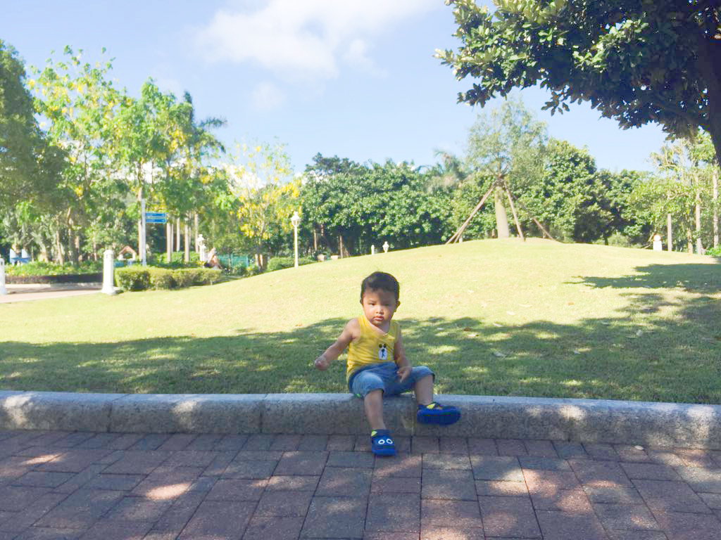 歇息後我們慢慢沿著悠閒小徑閒逛,小徑旁邊亦有一個又一個的小荷花池,但小猪誤會了以為可以嬉水,示意要走下去!