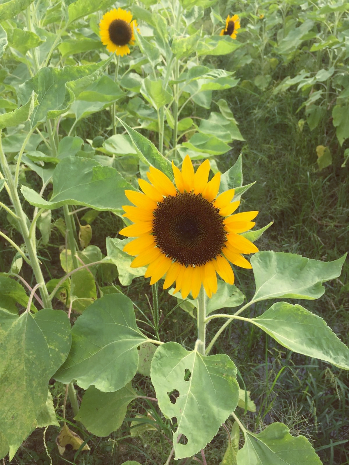 滿園迷人的向日葵真的讓人欲罷不能,莫名其妙的能安撫心情,真的捨不得離開!顧不得大大的太陽,又一陣的過雲雨,直拿手機狂拍照啊!