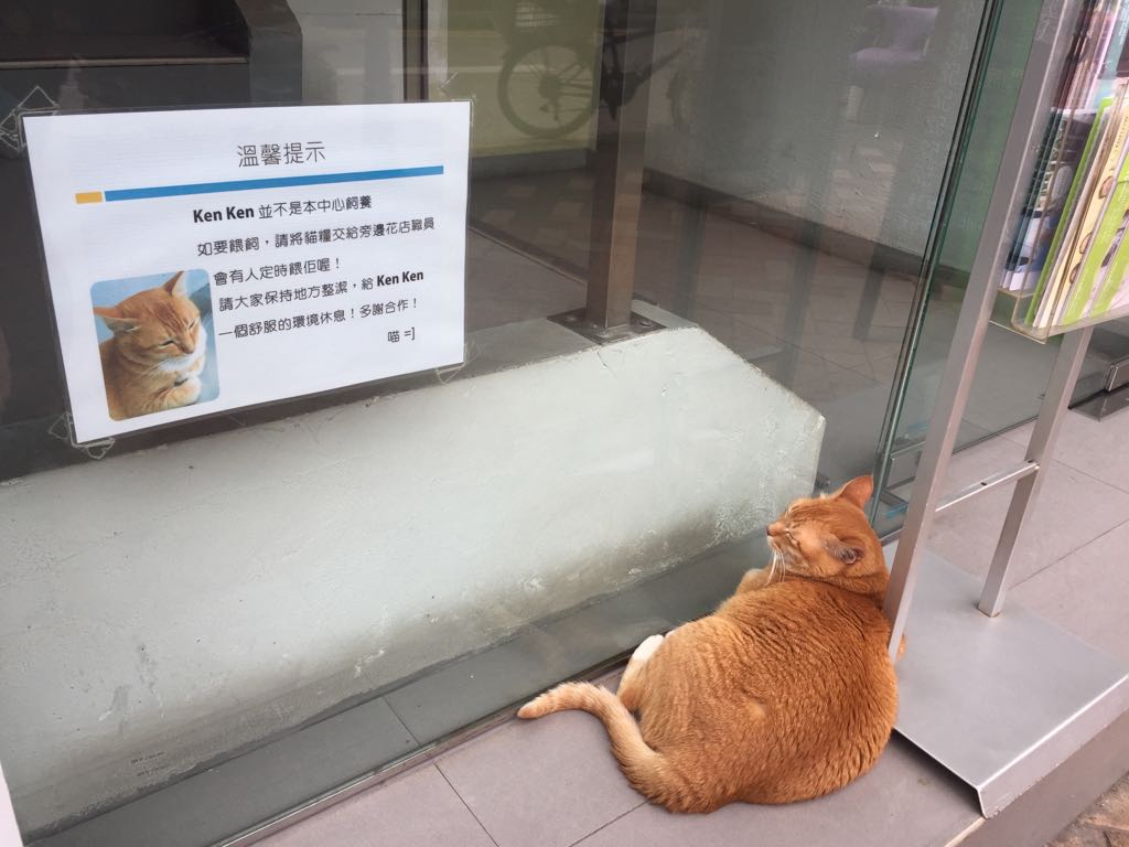 牠的居所就是補習社的門前,而且補習社還貼心地張貼告示請遊人們保持大門周邊的整潔,令喵星人有一個舒適的歇息環境。下一次如果路經花墟,可以帶同貓糧前去say個Hi啊!