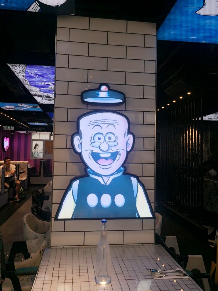 餐廳的裝潢就彷佛走進漫画世界中,到處也能看到漫画內的角色人物充滿在每一個角落。