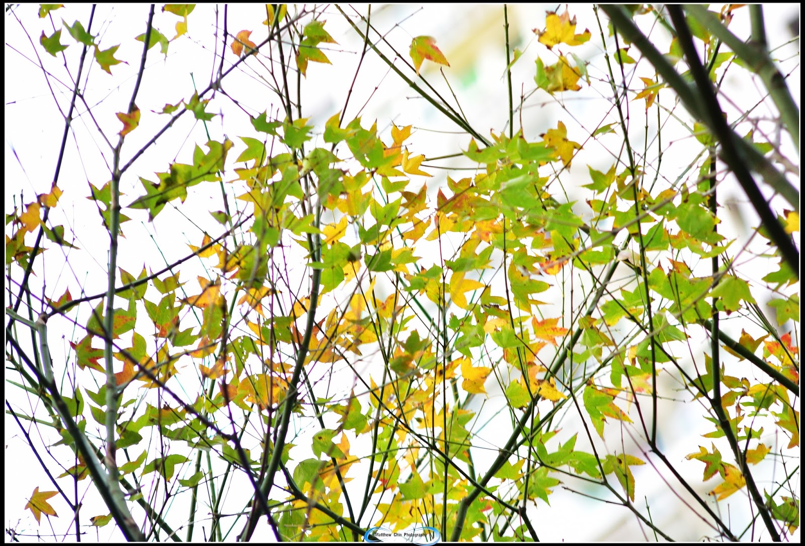 而在將軍澳景林邨水池旁,也可找到幾株在香港種得零星落索的五裂楓香,但基於被樓宇包圍,葉不會全株變紅,但藍天下,紅黄綠葉相間,也不失有點画意的。