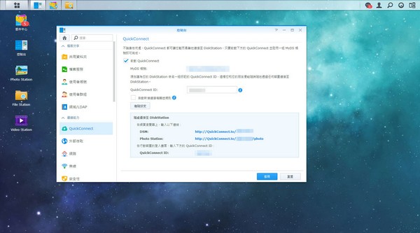既然是網絡存儲,為了讓我在街外都可以連接到 NAS,便登記了 QuickConnect 服務。完成後我便可以隨時在瀏覽器輸入 id.quickconnect.to 連接 NAS,比一串 IP 地址好記得多。