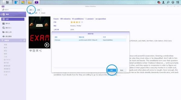 另外,不少外國電影是很值得欣賞的,但有時未必有字幕,實在難以理解劇情。幸好在 Video Station 中,可以在「操作 - 搜尋字幕」中,讓系統自動搜尋並下載字幕檔,完成後會在該電影相同的資料夾看到一個 .srt 檔,這就是字幕了,記得要保留呢。雖然字幕未必保證絕對正確,但總好過瞎猜劇情吧。