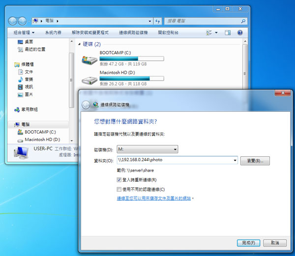 設定網路磁碟機的好處是於毋須無次開機都要輸入 IP 位置。