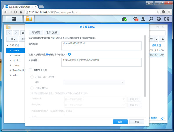 更可以設定存取權限,可以公開給所有人下載、只限 DiskStation 使用者下載,或需輸入密碼才可下載。