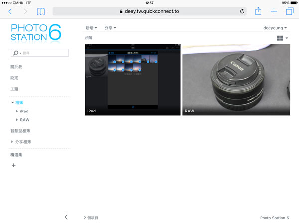 要連接到 Photo Station,於瀏覽器輸入網址 ”QuickConnect.to/deey/photo”