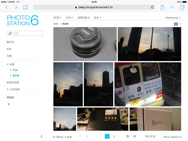 除了電腦外,還可以用 iPhone / Android 內建瀏覽器連接 Photo Station 手機版,但版面會變得較為簡單