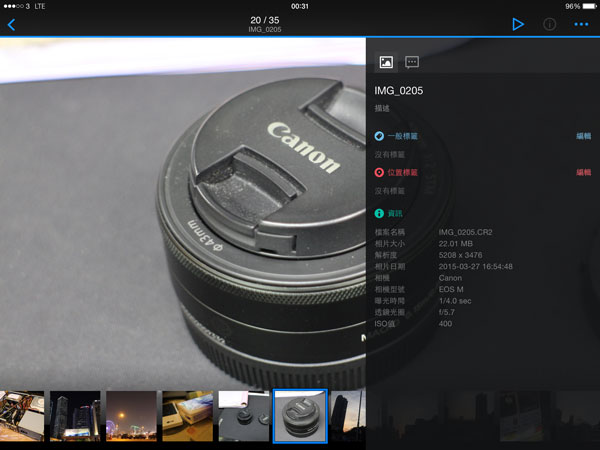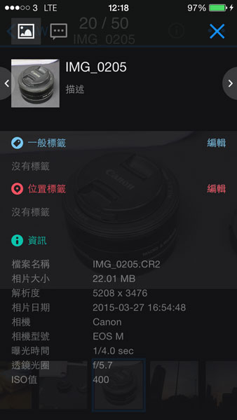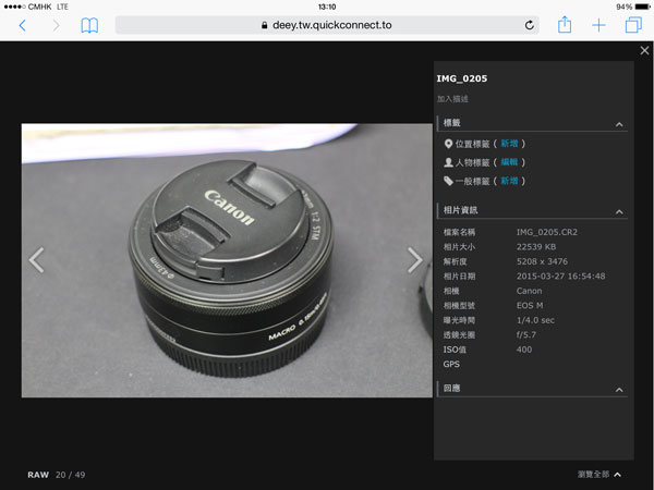 按下預覽即可觀看相片,可見 Photo Station 支援 RAW 檔案格式及顯示 EXIF 資料