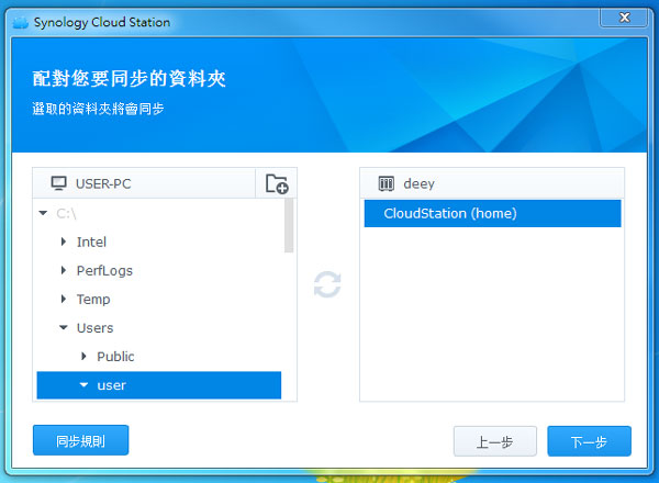 成功連線後,就可以選擇要同步的資料夾。