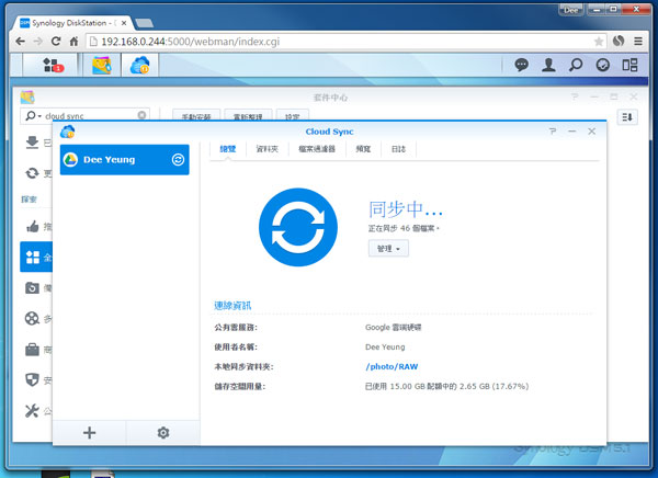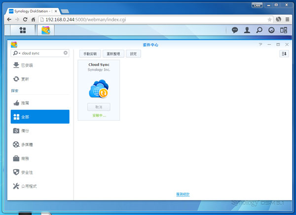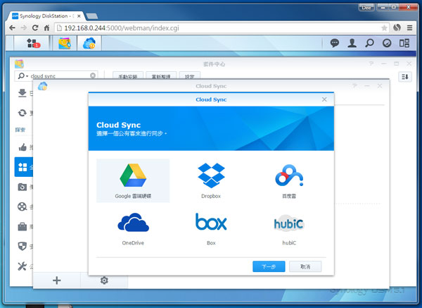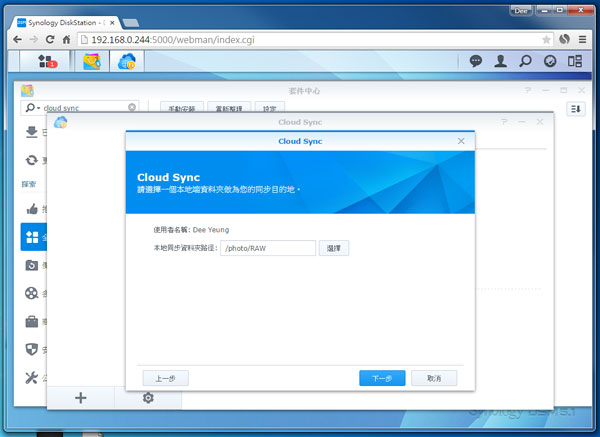 Cloud Sync 可於套件中心裡找到,安裝並啟用就可設定同步選項。