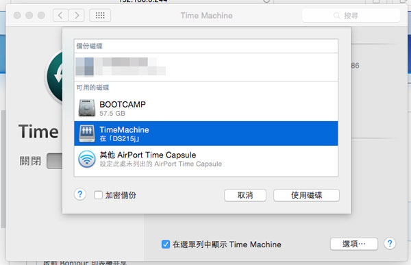 然後進入 Time Machine 設置版面,選擇用作備份的硬碟。