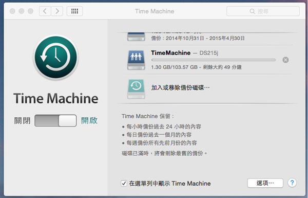 設定完成後,Time Machine 便會開始備份,