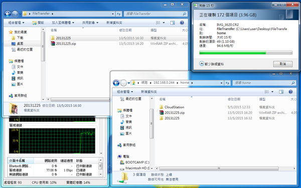 PC 傳送到 DiskStation 速度約 98MB/s