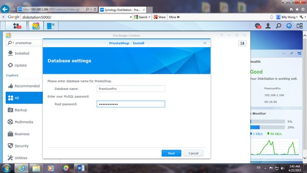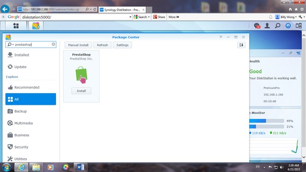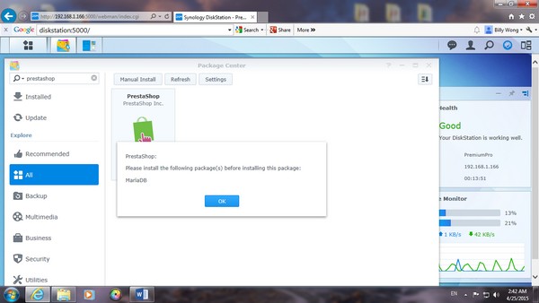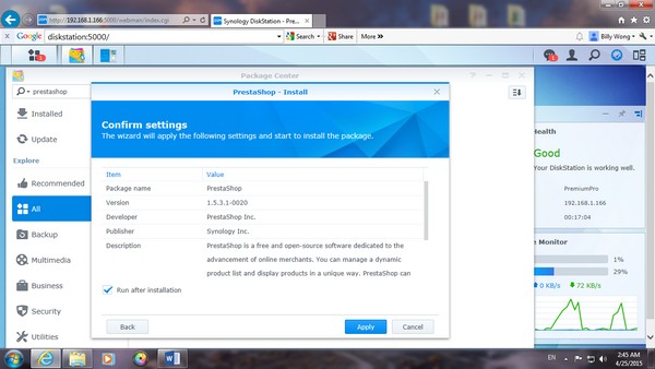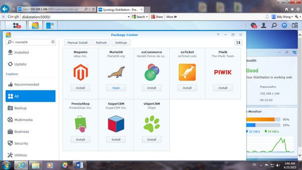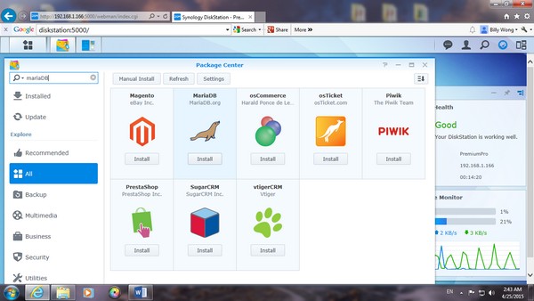 在 search 那,可以找到一些有用的 aoos,因為我今次試用 online store,所以 MARIA DB database 是必要的,當然還有期待的 PrestaShop。在 NAS 內的 app center 亦有提供下載。