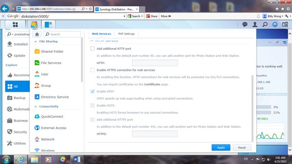 先寫點前言, 我對 Synology 的 NAS 產品一點也不陌生,因為工作上需要大量數據往來, 所以公司的IT部門也用上了好幾部,而且均是企業級的型號,至於家用及中小企的型號就未曾試過。最近和幾位好友研究網上商店的可行性,做過 research Synology NAS 可提供 online store 的設定,作為試驗性質也不失為一個經濟的方案。剛好遇見 DCFever 的 Synology NAS 測試活動就决定一試!