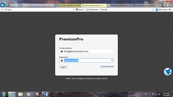 Online store 的店面、貨品上架及運費等資料設定均須在 dashboard 內進行,只要在 address 後面加上之前我在 File Station,Web Folder 中的 admin 名字,我便可以登人 dashboard。