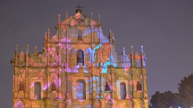 ▲ 大三巴牌坊「愛之無界」光雕表演 光雕表演是在建築物上投射各種圖案,「2017 澳門光影節」光雕表演共設於三個景點,分別在大三巴牌坊、聖安多尼教堂和望德聖母堂舉行。 |