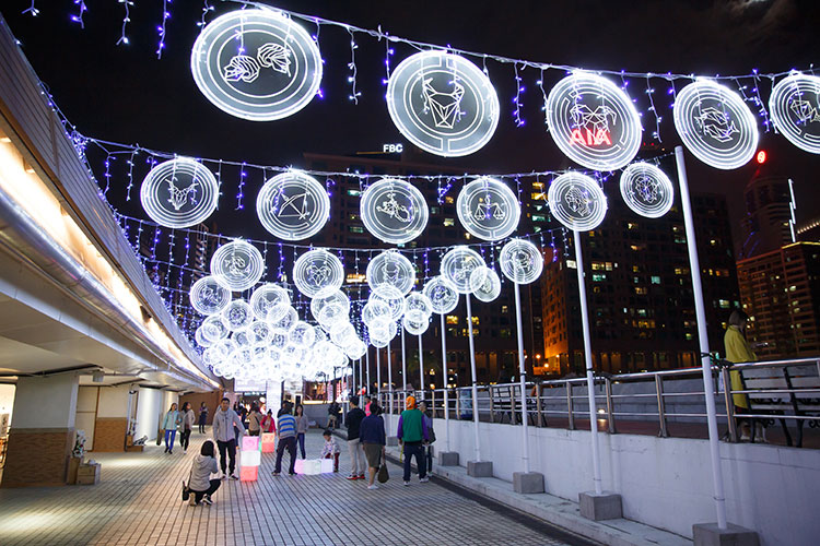 ▲ 議事亭前地「愛由心生」燈飾裝置 今年設有燈飾裝置的地點總共有六個,包括議事亭前地、瘋堂斜巷和婆仔屋、南灣.雅文湖畔、南灣湖水上活動中心、白鴿巢公園及氹仔龍環葡韻。 |