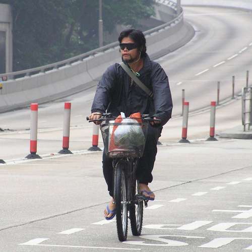 Stylist on bicycle