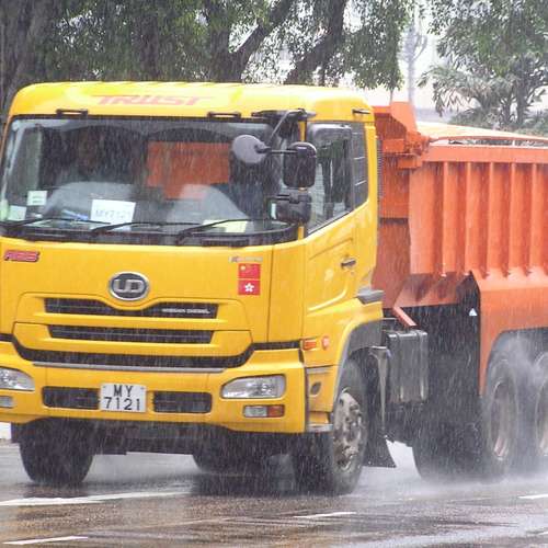 Construction Truck in Rain