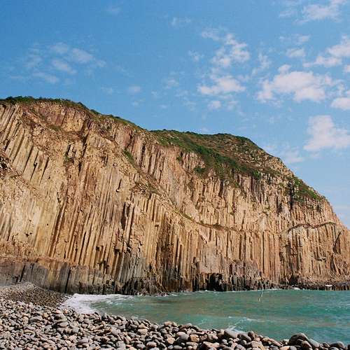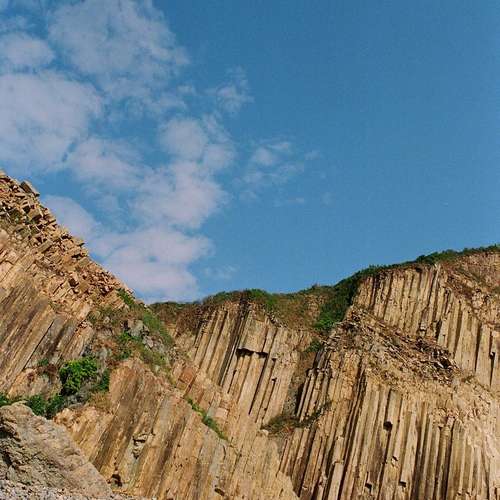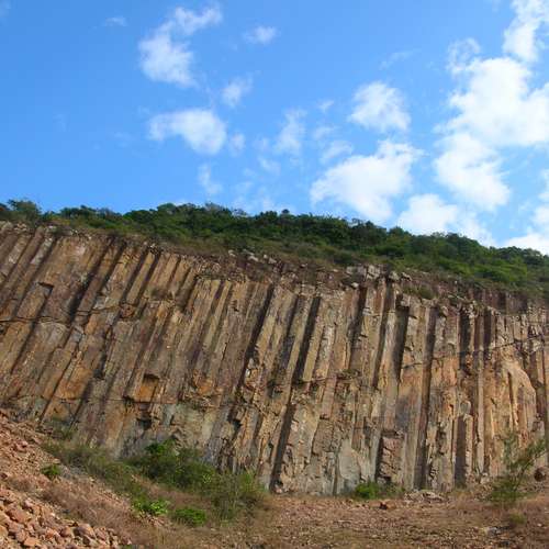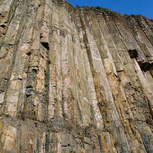 巍峨的六角柱岩山崖