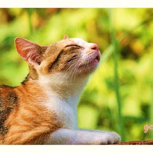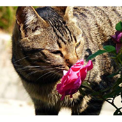 賞花的小貓