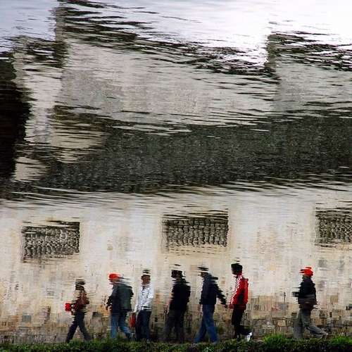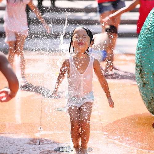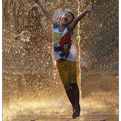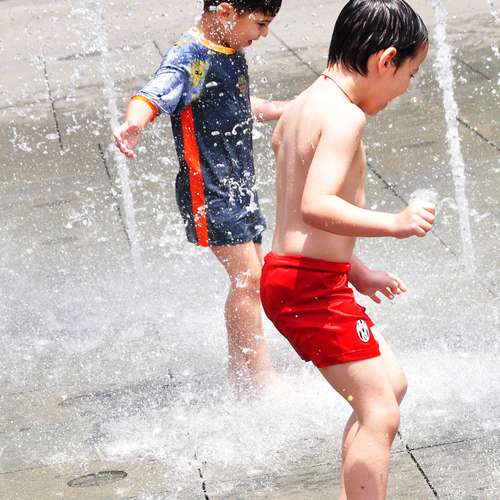 把噴水池噴出來的水踩回去!