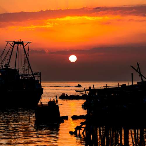 漁村特色的日落