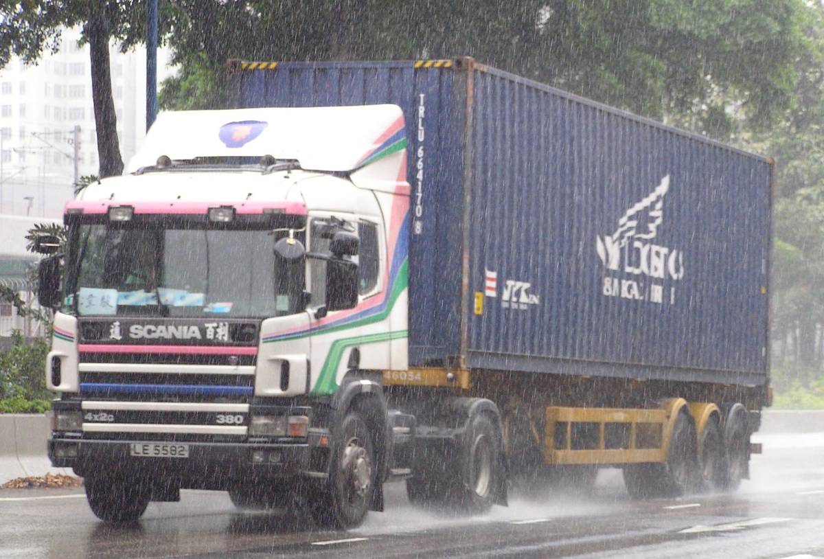 Container Truck in Heavy Rain