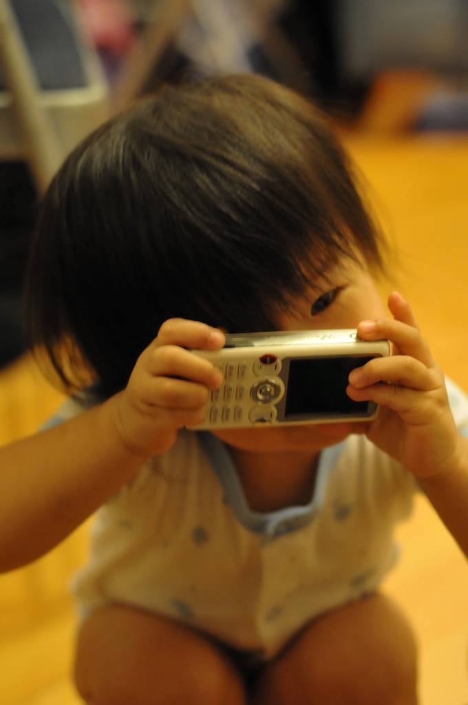 當我影她的時候,她便用手上的手機當作相機模仿我攝影