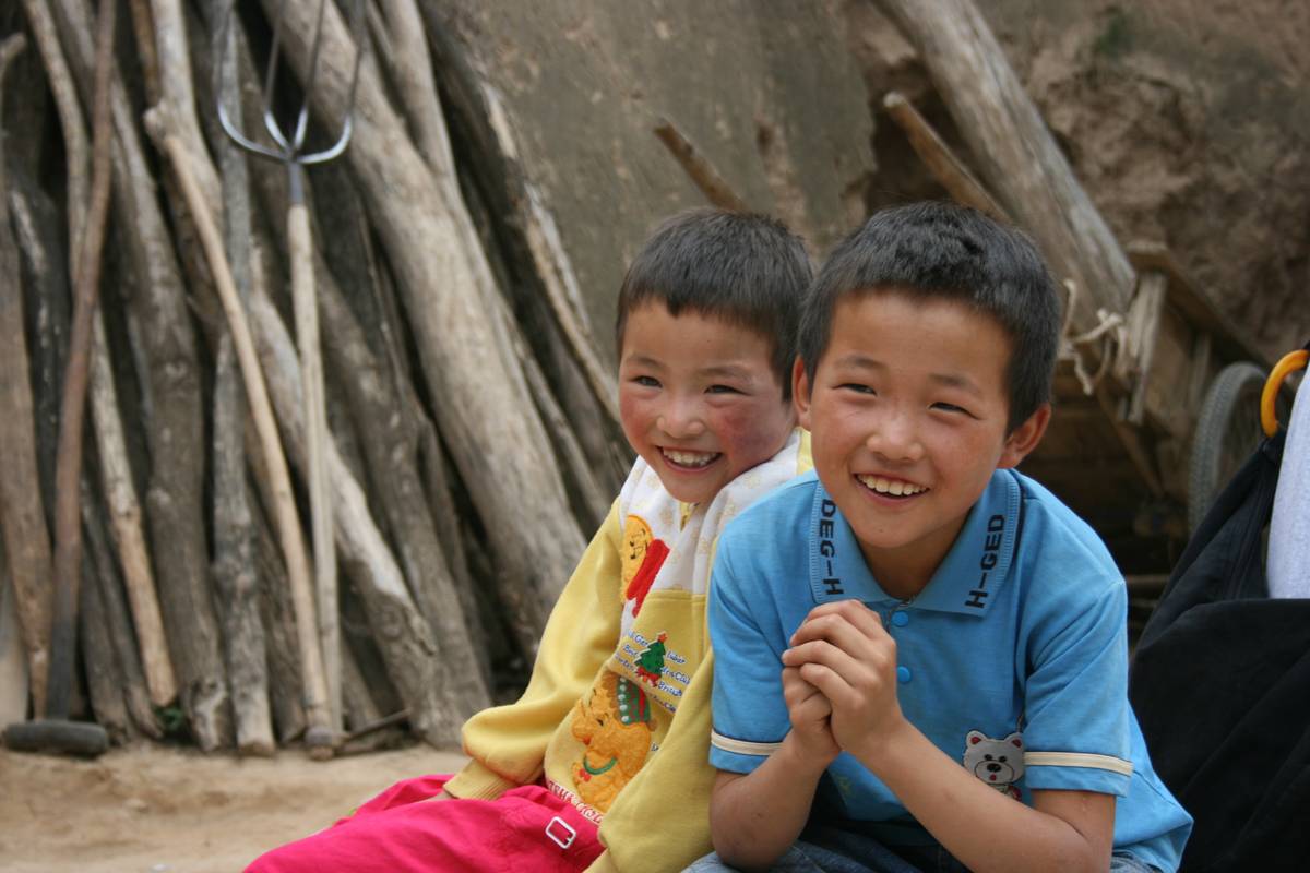 山區的一對兄妹,在慈善機構的幫助下,生活得以改善,展露的笑容。
