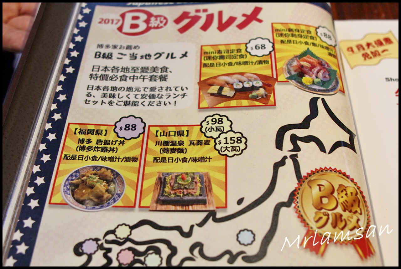 如刺身,咖哩,三魚文,滑蛋叉燒飯等等