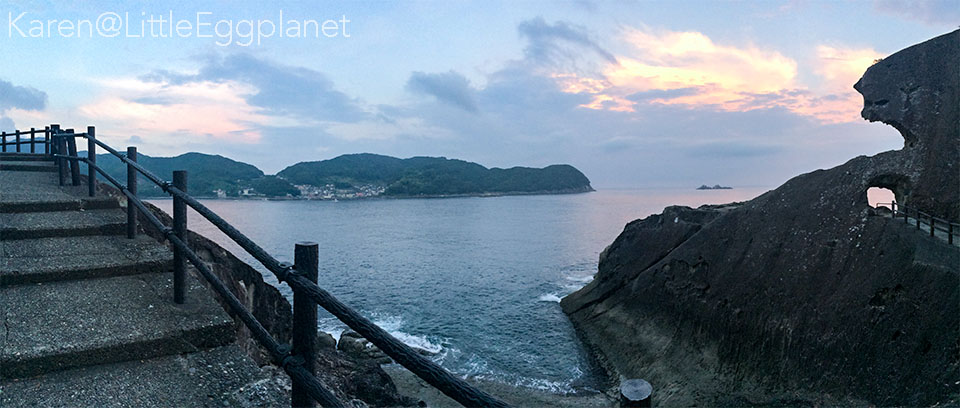 在附近就有鬼ヶ城觀光中心,白天可以到餐廳Cafe坐坐,眺望眼前的廣闊海景。 有點遺憾的是,當時我到達鬼ヶ城的時候,已經接近日落天黑時分,所以只在這最有代表性的位置停了一下,拿出一台iPhone 5s隨使拍了幾張照片,就要沿路折返了。